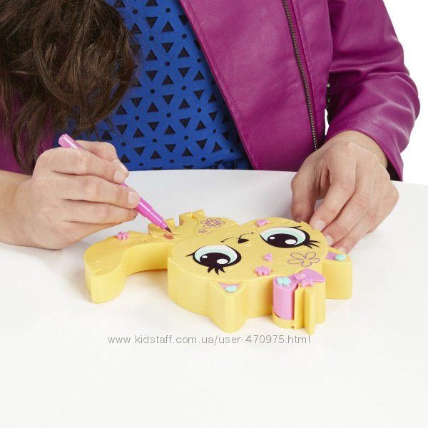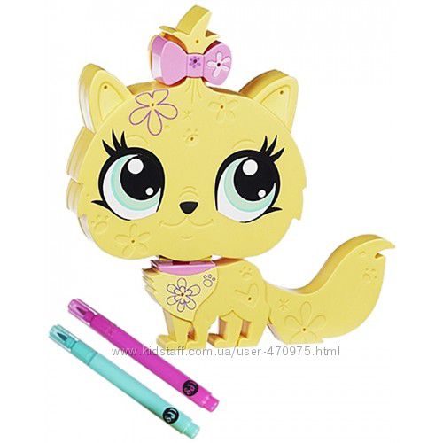 Набор "Укрась зверюшку" от компании Hasbro создан специально для маленьких поклонниц мультфильма Маленького Зоомагазина Littlest Pet Shop, 118 которые любят заниматься творчеством. В наборе предлагается фигурка Желтой Кошечки, которую необходимо украсить с помощью аксессуаров из комплекта: маленьких бабочек, стикеров наклеек и двух ярких маркеров. Все принадлежности можно спрятать в саму фигурку Пет Шоп, так ее задняя крышка открывается.