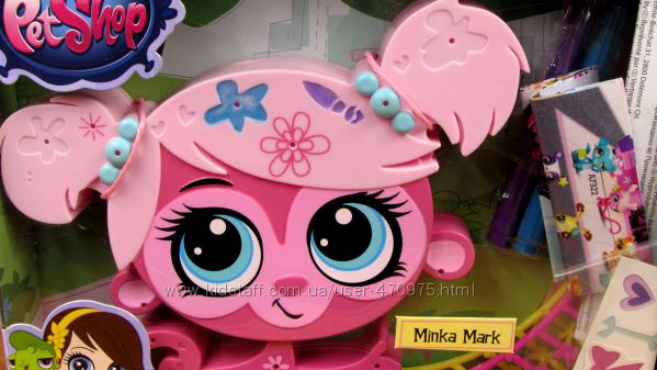 Игровой набор "Укрась зверюшку" Littlest Pet Shop от американской компании Hasbro позволит тебе сделать уникальным своего питомца! В этом наборе ты найдешь одну из главных героинь мультсериала "Маленький зоомагазин". Используй маркеры, стикеры и элементы дизайна, которые находятся в наборе, чтобы украсить розовую обезьянку. Все эти принадлежности ты можешь хранить в "потайном карманчике" в задней части игрушки. Элементы дизайна для украшения обезьянки нужно выдавливать из пластин салатового и розового цвета, которые имеют форму бананчиков.
