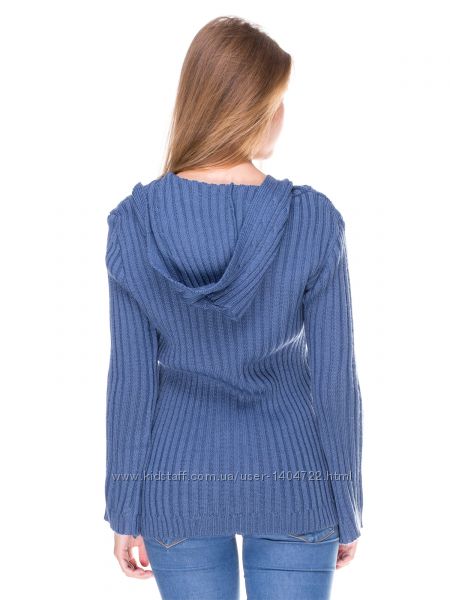 Подробное описание: Пуловер синий с капюшоном, шерсть мериноса