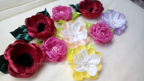 Авторские заколки ручной работы. Выполнены из шифона и атласных лент. Все листики и лепесточки изготовлены вручную. Прекрасное украшение в волосы или для одежды, взрослым и детям. Дополнит любой наряд и сделает образ неповторимым и ярким:)Оригинальный подарок. Диаметр цветка 5-5,5 см.