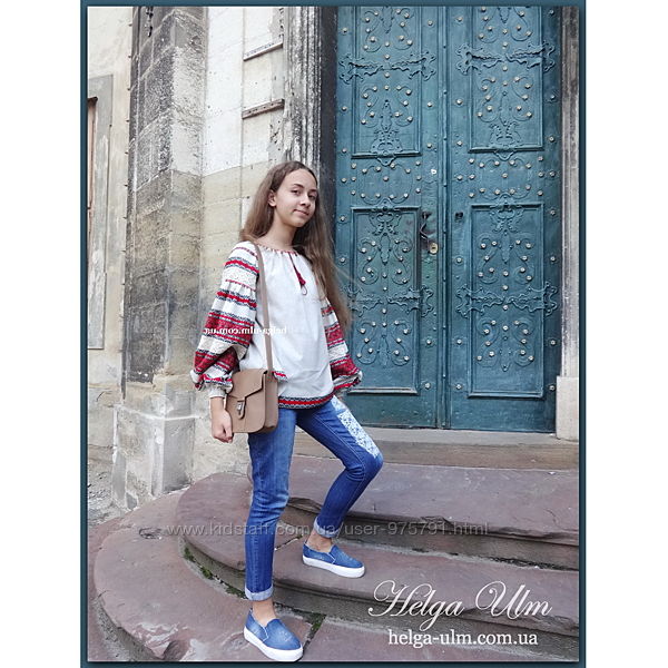 Можна носити з поясом чи ремінцем в тон вишивки.