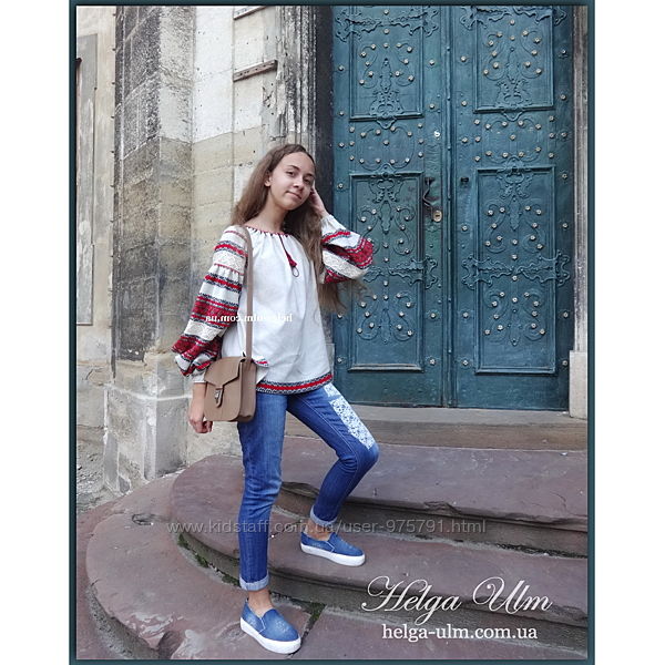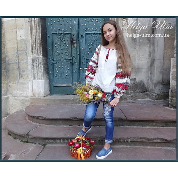 Дещо довга, гарно підійде як до традиційного українського строю так і до класичної спіднички, штанів чи, навіть, джинсів.