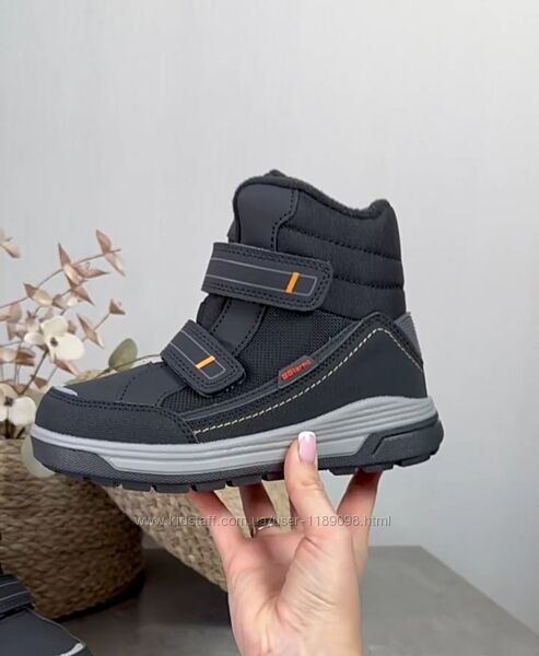 Термочеревики для хлопчиків від ТМ BG Termo ▫️Ззовні термоматеріал із системою waterstop та зносостійкий матеріал PU, PVS ▫️Фіксуються на ніжці двома липучками ▫️Всередині натуральна овеча вовна та повітропроникна устілка із термоефектом ▫️ Морозостійка підошва із антиковзаючим покриттям ▫️Рекомендовано від +5 до -30 градусів .