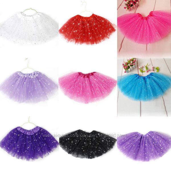 Яркие, эффектные, воздушные юбочки ту-ту из трехслойного фатина сблестками, с атласным пояском на резинке. Подойдет на любой праздник,