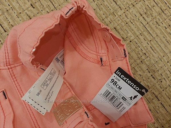 персиковые штаны новые с биркой джинс мягкий, замеры длина 50 см, ПОТ 26 см, ПОБ 26 см,ширина штанины внизу 10 см, шаговый шов 33 см фирмовые есть утягивающая резинка 98% котон 2% еластан цвет модный персиковый