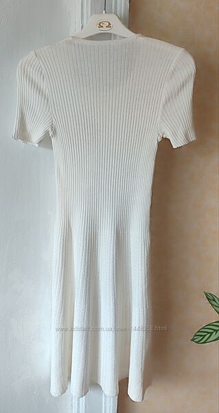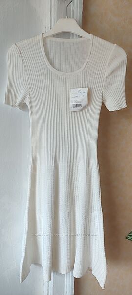 Платье с тонкого трикотажа. Новое. Смотрится очень нежно, нет ничего лишнего. Юбка клёш. Короткий рукав. Приятное к телу. Размер 36 - 38. Тянется.Длинна всего изделия 92 см. ПОГ при максимальном растяжении ткани 42 см. ПОТ 44 см.