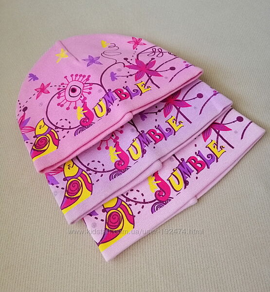 Шапочки "Jumble", подвійний трикотаж Виробництво Польща Склад: 95% - бавовна, 3% - еластан Розмір універсальний на вік від 2 до 4 років Напівобхват 20, тягнеться до 35, глибина 17 Кольори в наявності: бузковий, молочний, рожевий, світло-рожевий