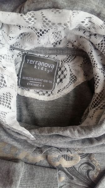 Подробное описание: Платье туника Terranova серое 4-5 лет, гипюр, 104 -110 см, с капюшоном ажу