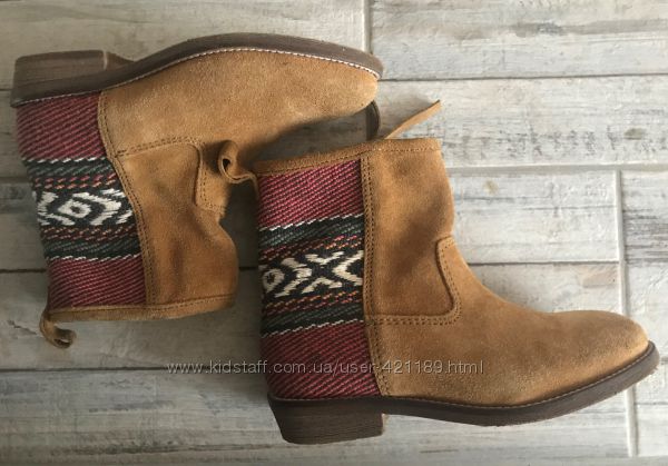 Сапожки Манго демисезонные (не утеплённые), размер 29-30, указана стелька 19 см, реально на стопу до 20 см, зстёжка-«молния». Верх: замша (кожа натуральная) со вставками из текстильного м-ла.Производитель: Индия.