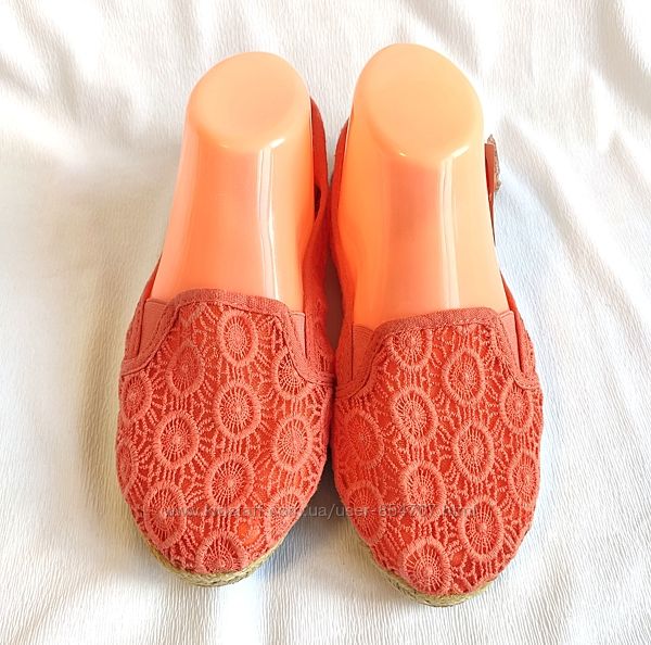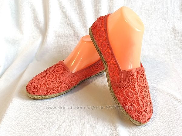 Эспадрильи женские коралловые текстиль TU (размер 38, UK5)Цвет коралловый. Кружево на сетке. По канту подошвы отделка из льна. Стелька хлопковая.