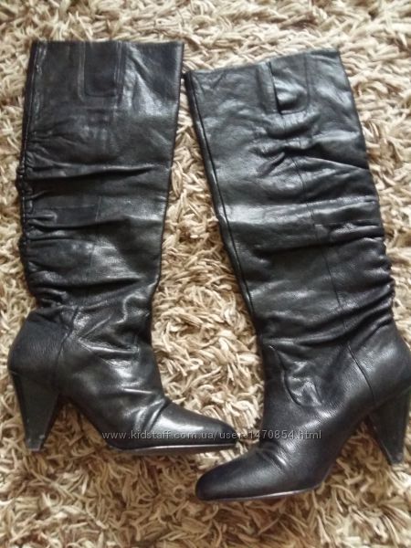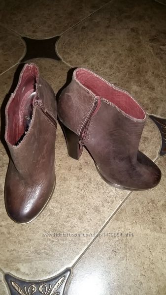 Фірмові шкіряні чобітки від американського бренду Nine West. Вказаний розмір 5 М. Підійдуть на ніжку 34 - 35 розміру з вузькою стопою і низьким підйомом. В хорошому стані, але є пошкодження каблуків, тому така низька ціна.Є інше жіноче взуття на маленьку ніжку.