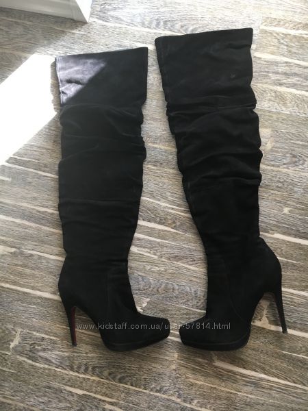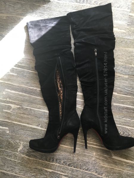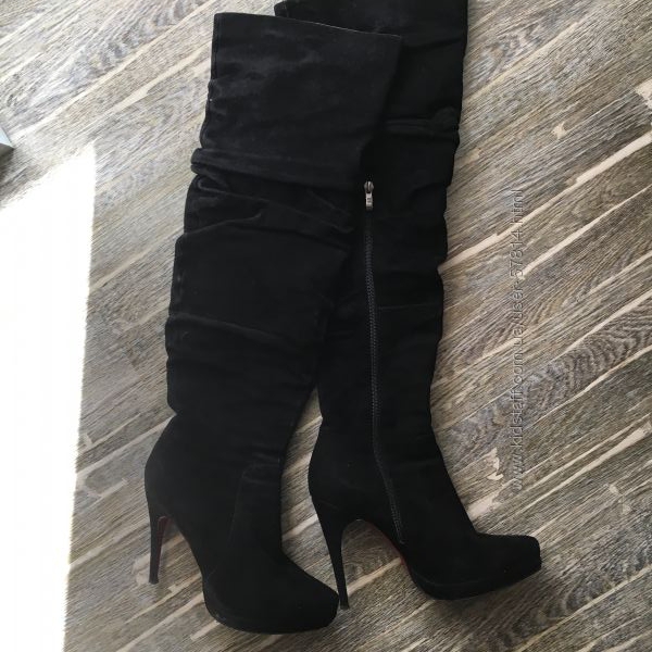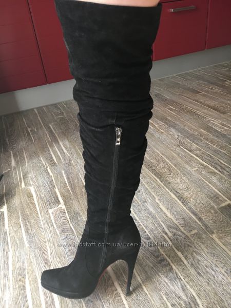 Замшевые сапоги до середины коленаL Carvari, на подошве указан 38 размер, большемерят идут на полный 39