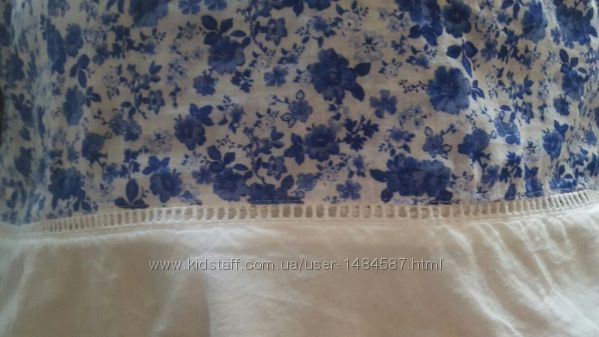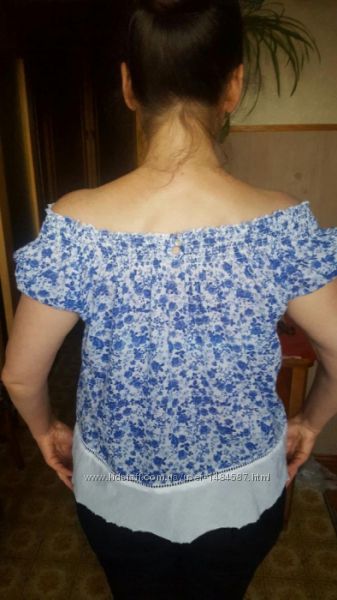Миленькая легусенькая симпатичная блузка 100% хлопок(батист). Расцветка "гжель". Рукав фонарик, по низу отделка мережкой. Можно носить как с оголенными плечами так и просто за счет мягеньких резиночек в районе горловины. Подойдёт на размер 44-48. В идеальнейшем состоянии, без дефектов.