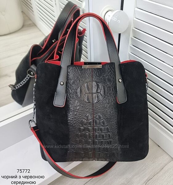 Подробное описание: сумка черная с красным Екошкіра з крокодиловим принтом . Формат А4