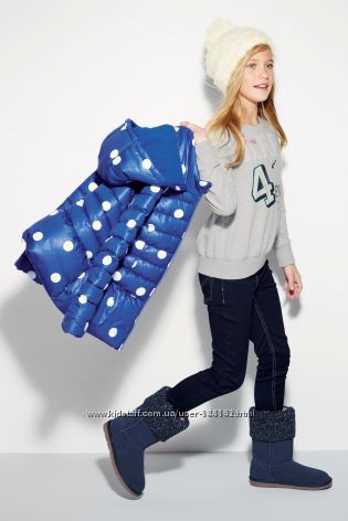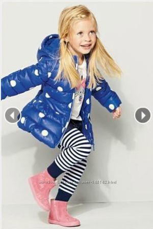 Next Кобальтовая дутая куртка в горошек Некст Курточка с капюшономОтлично подойдет для холодной осени (в сочетании с шарфиком и утепленными штанишками). Внутри чувствуется какой-то синтепон, и сверху флис. Но флис есть не везде. Он есть в капюшоне и внутри самой курточки, а внутри рукавов его нет (хотя утеплитель синтепон есть). Размер 5-6 лет
