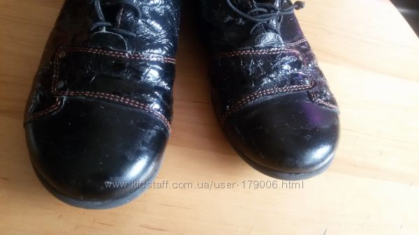 Состояние хорошее, подошва целая, дыр, трещин нет. Возможно для двора или сменки. Нюансы: грязноватая внутренняя стелька, защитный слой лака на носочках кое-где слез, на одном есть царапина, но в глаза не бросается. Есть примятости. Очень крепкие туфли.