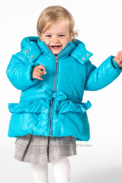 Куртка ярко голубого цвета. Капюшон отстегивается . От попадания снега и ветра в рукавах есть защитные резинки, а шею защищает высокий ворот на молнии и капюшоном на заклёпках. Есть 2 кармашка.