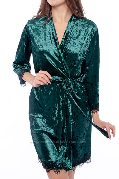 Подробное описание: Халат Serenade 5061 мраморный велюр изумрудный