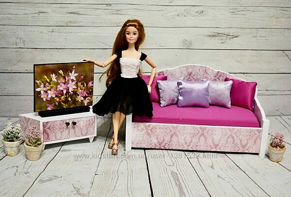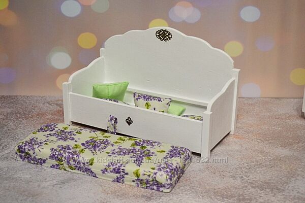 Ручна робота Матеріал: дерево, акрилова варба та лак, текстиль Підійде для ляльок до 30см Колір за бажанням Фото для прикладу Диван окремо - від 600грн