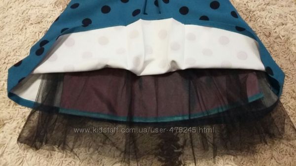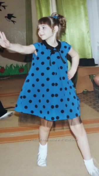 Нарядное платье для девочки, размер 122, возрост 5-6 лет., длина 58см.(с фатином 64см.), ширина (под руками) 35см.Платье в идеальном состоянии, полностью на подкладке, с черным фатиновый подюбником. Резинка для волос и две заколки - в подарок.Цена окончательная.