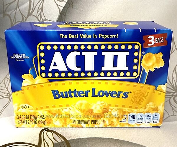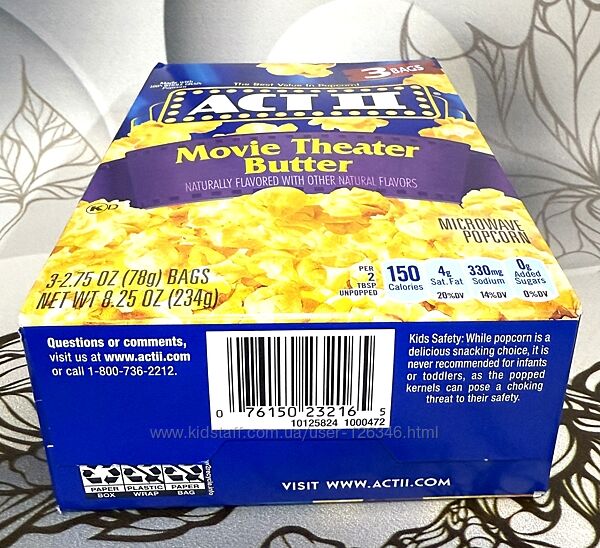 Пачка складається з трьох пакетів попкорну, який потрібно просто помістити у мікрохвильовку.