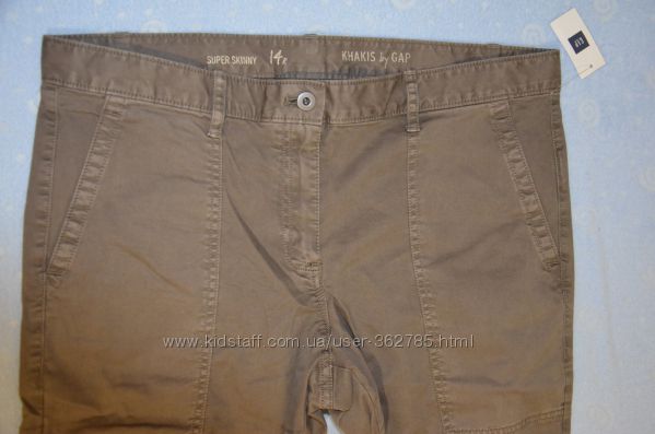 Продам новые, с бирками, брюки-скинни фирмы "GAP" ( США ). Сделаны в Индии, состав 98% коттон, 2% спандекс.Цвет - хаки. На 14й размер маломерят, подойдут на 12 американский. Тянутся слабо, плотненькие.