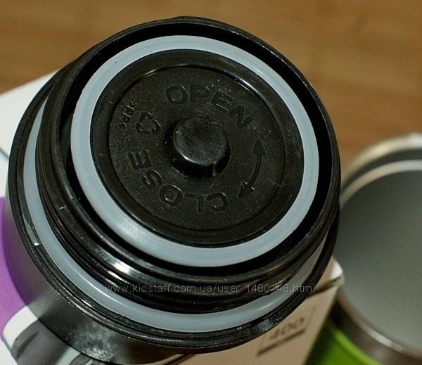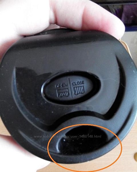 Герметичная пластиковая крышка-клапан черного цвета открывается одним нажатием что позволяет разливать напиток и пользоваться кружкой не снимая крышку или во время движения.
