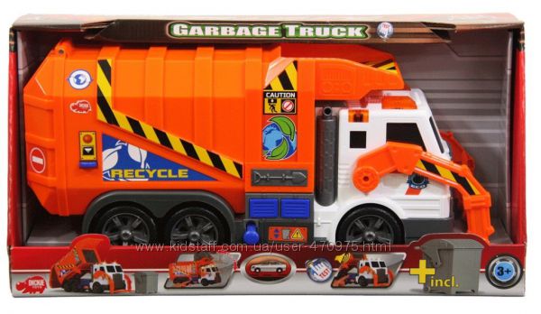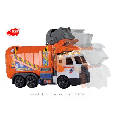 Подробное описание: Функциональная Грузовая Машинка Мусоровоз Dickie 3308369, свет, звук