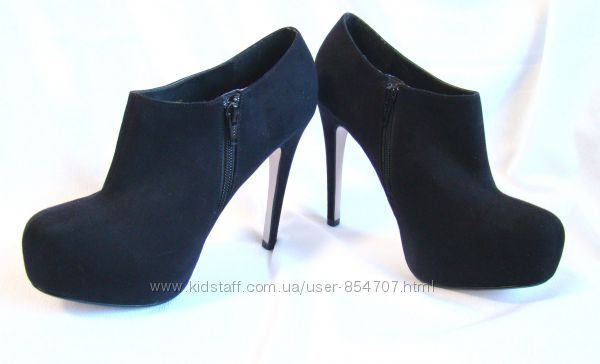 Ботильоны женские, замшевые, черные Red herring (Размер 39 (UK6))На скрытой платформе. Искусственная замша.