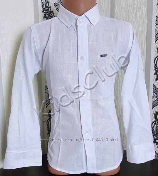 Рубашка однотонная хлопок (под лен) на мальчика на рост от 110 до 140 см. Ткань тонкая, не стрейчевая. Рукав трансформер (регулируется в 2 длины). Производитель Турция.погрешность +-1см.