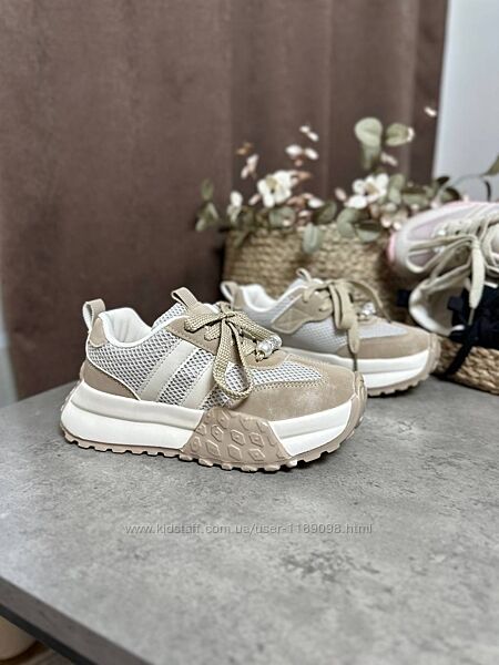 Стильні та зручні кросівочки для дівчаток Виготовлені з екошкіри ,екозамші. Устілка шкіряна із супінатором Дуже Легенькі Фіксуюттся шнурівкою та липучкою Намистинки можна зняти за бажанням .Є у чотирьох кольорах