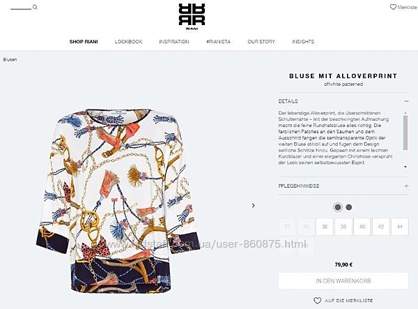 Riani - это стиль жизни, обладает классом и всегда является в нужное время с идеальным нарядом и это подходит всегда и везде!