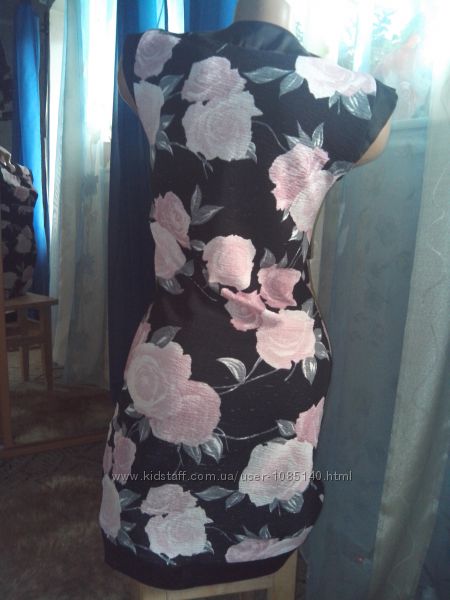 Размер указан 42, замеры: длина 90 см, плечи 36 см, ПОГ 42 см, ПОТ 39 см, ПОБ 45 см. Ткань, состав: 100% полиэстер, плотный, приятный к телу, не просвечивает, почти НЕ тянется, по типу бандажного, отлично подтягивает и стройнит;-)! Б\у, в отличном состоянии. Спрашивайте, пожалуйста, оочень красивое и отлично подчёркивает фигурку;-)!