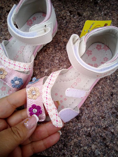 Подробное описание: Босоножки для девочки фирмы С. Луч размер 26 и 31 , 3 цветка розовые