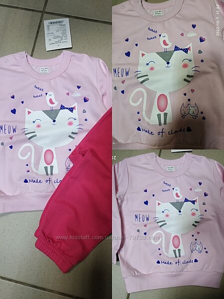 Костюмы и пижамки девочковый "Кошечки" BAYKAR (премиум хлопок-Турция), х/б + баечка, качество супер(Украина).Комплектность :