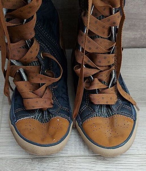 Состояние очень хорошее, целые без дырок, есть небольшие потертости на стыках кожаных вставок, подошва не стерта. Состояние вполне приличное.