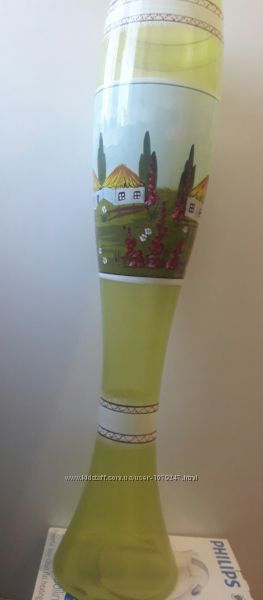 Стильная стеклянная ваза красивый элемент любого интерьера.Очень красивая напольная ваза. Изготовлена моими друзьями из мастерской в Тернопольской области. В цехе трудится 5 человек. Все вазы расписываются вручную.
