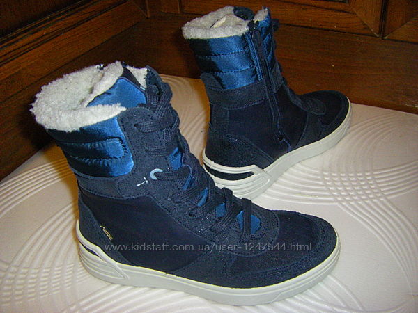 ф. 8 СИНИЕ высокие зимние ботинки ЕССО, внутри белый мех, плотная меховая стелька, мембрана Гортекс, р. 34, стелька 22.5 см - 2300 грн