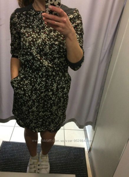 Платье от испанского бренда Sfera в принт. В талии на резинке, два кармана по бокам,рукав 3/4 Легкое,на подкладке. Размер S-M. указан S. Общая длина 87 см. От плеча до резинки на талии 42 см. Длина от талии до низа 45 см. Рукав 46 см. Ширина в районе груди под рукавами 47 см. ПОТ в спокойном состоянии резинки 34 см до 42 см. В районе бедер полу обхват 47-48 см. Без возврата,торга!