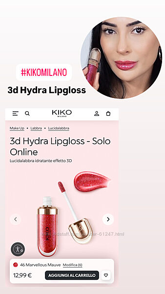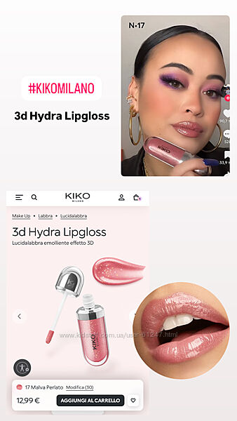 Подробное описание: 3D Hydra lipgloss от Kiko Milano, Италия