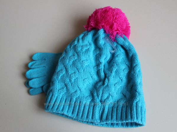 Комплект Шапка и перчатки Pink Platinum. США. 4-6 лет. СШАPink Platinum Girls´ Cable Knit Pom Beanie W/Glove