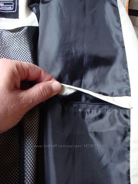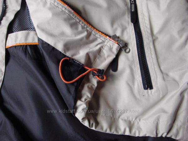 Воротник на резинке регулируется сзади. Внутри: карман для сотового, 1 на липучке, 1 на замке