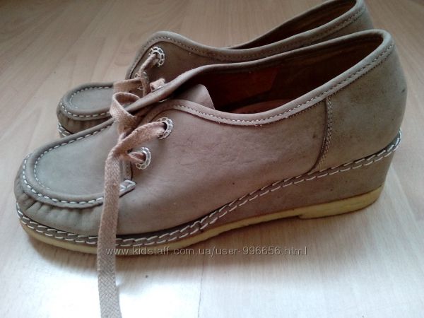 Мега-зручні, фірмові, якісні закриті туфлі на шнурках. Розмір 38. Дуже зручна невисока танкетка. Підошва поліуретанова. Натуральний нубук. Стан нових - одягнені буквально два рази.