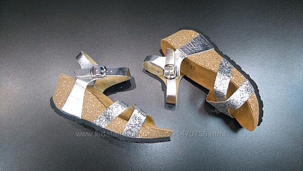 Состав: Верх - натур. кожа с глиттером (не осыпается!); стелька - натур. кожа, анатомическая, очень мягкая, выделки под натур. замшу; подошва - пробковая с прорезиненной накладкой
