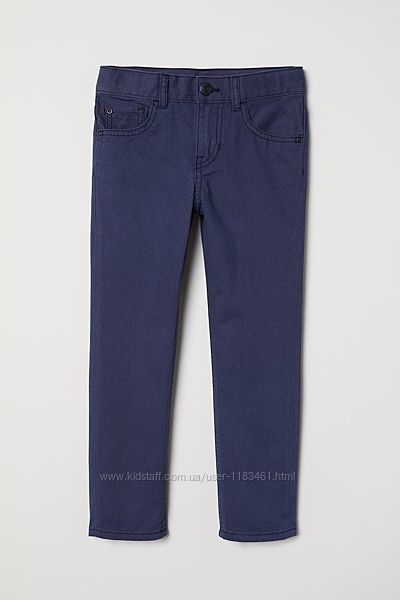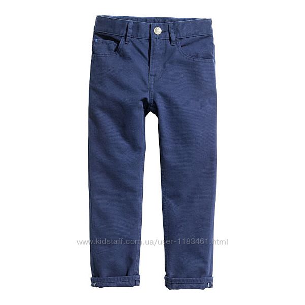 фото 4 Брюки H&M с пятью карманами из эластичного хлопкового твила. Узкая посадка, узкие брючины. На талии регулируемая резинка и застежка на молнию и кнопку.