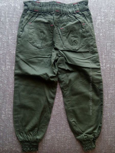 Удобные, легкие и комфортные штанишки для активной малышки. Пояс регулируется, есть карманы сзади и спереди, штанина внизу на резинке.