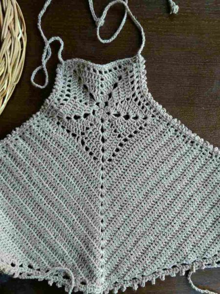 Пора готовиться к лету. Стильный кроп-топ обязательно должен быть в гардеробе модницы. Он прекрасно смотрится как с шортами, джинсами, так и с юбками различной длины.Ручная работа, льняная пряжа, универсальный натуральный оттенок.