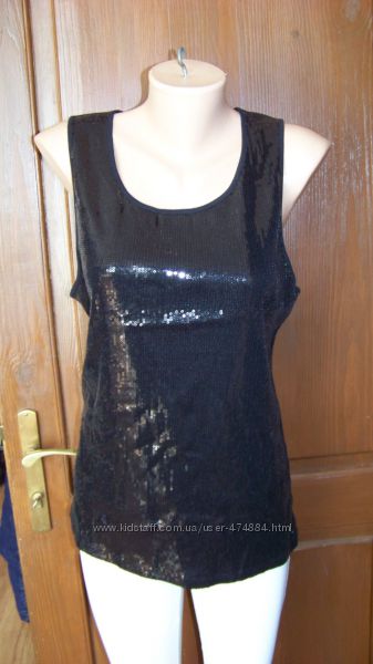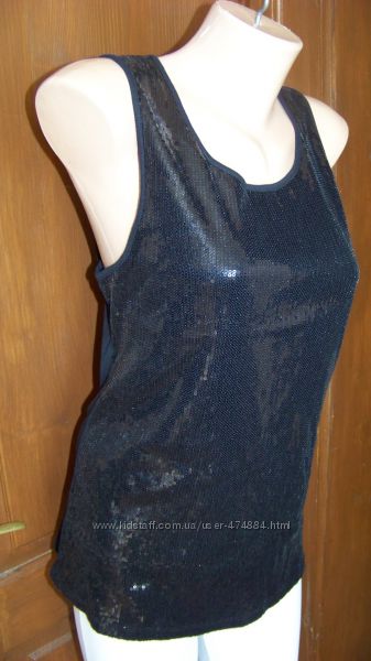 Черная котоновая майка... с мелкими пайетками спереди в тон изделию... сзади не расшитая... размер указан XL... может быть от М до XL, в зависимости от того, как носить... как тунику или майку... отлично тянетсяЗамеры по ткани: