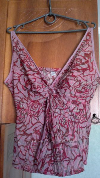 Оригинальная красивенная маечка в виде банта. Принт - большие розы. Разм.46. Состояние идеальнейшее - состояние новой вещи. Принт - красивые большие розы (на фото видно). Маечка сделана в виде банта (на фото немного видно). Сбоку имеется замочек, сзади вверху имеется резиночка.