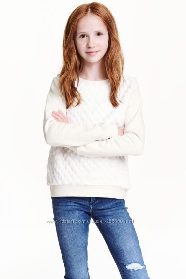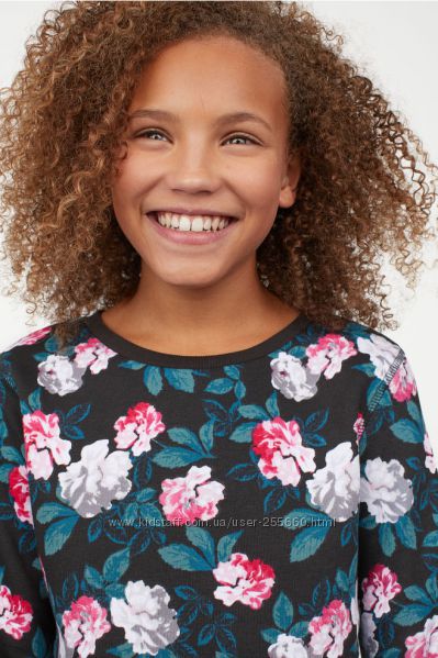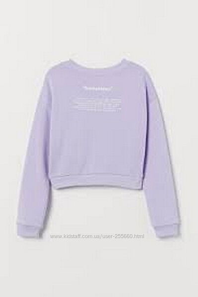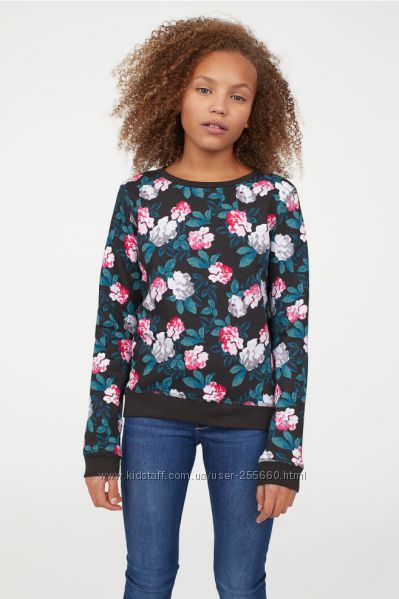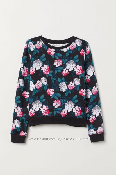 Свитшет из мягкого трикотажа с набивным рисунком. Модель с заниженной линией плеч. Низ, горловина и манжеты на резинке. Мягкая изнанка с начесом. Состав:100%хлопок. H&M.